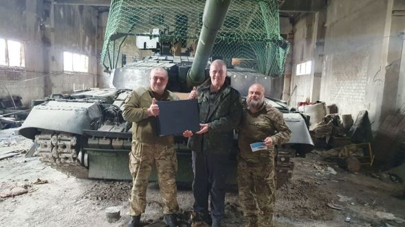 Jens Alstrup ved en kampvogn lige syd for Izjum.
