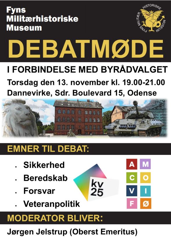 I forbindelse med det kommende byrådsvalg inviterer Fyns Militærhistoriske Museum til et åbent debatmøde, hvor der sættes fokus på fire væsentlige temaer: